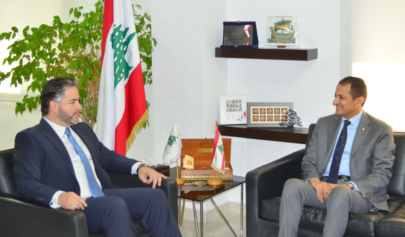 وزير الاقتصاد والتجارة في حكومة تصريف الأعمال اللبنانية يجتمع مع سفير دولة قطر