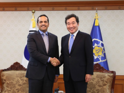 استقبل دولة السيد لي ناك يون رئيس وزراء جمهورية كوريا، اليوم، سعادة الشيخ محمد بن عبدالرحمن آل ثاني نائب رئيس مجلس الوزراء وزير الخارجية، وذلك خلال الزيارة الرسمية التي يقوم بها سعادته إلى كوريا.