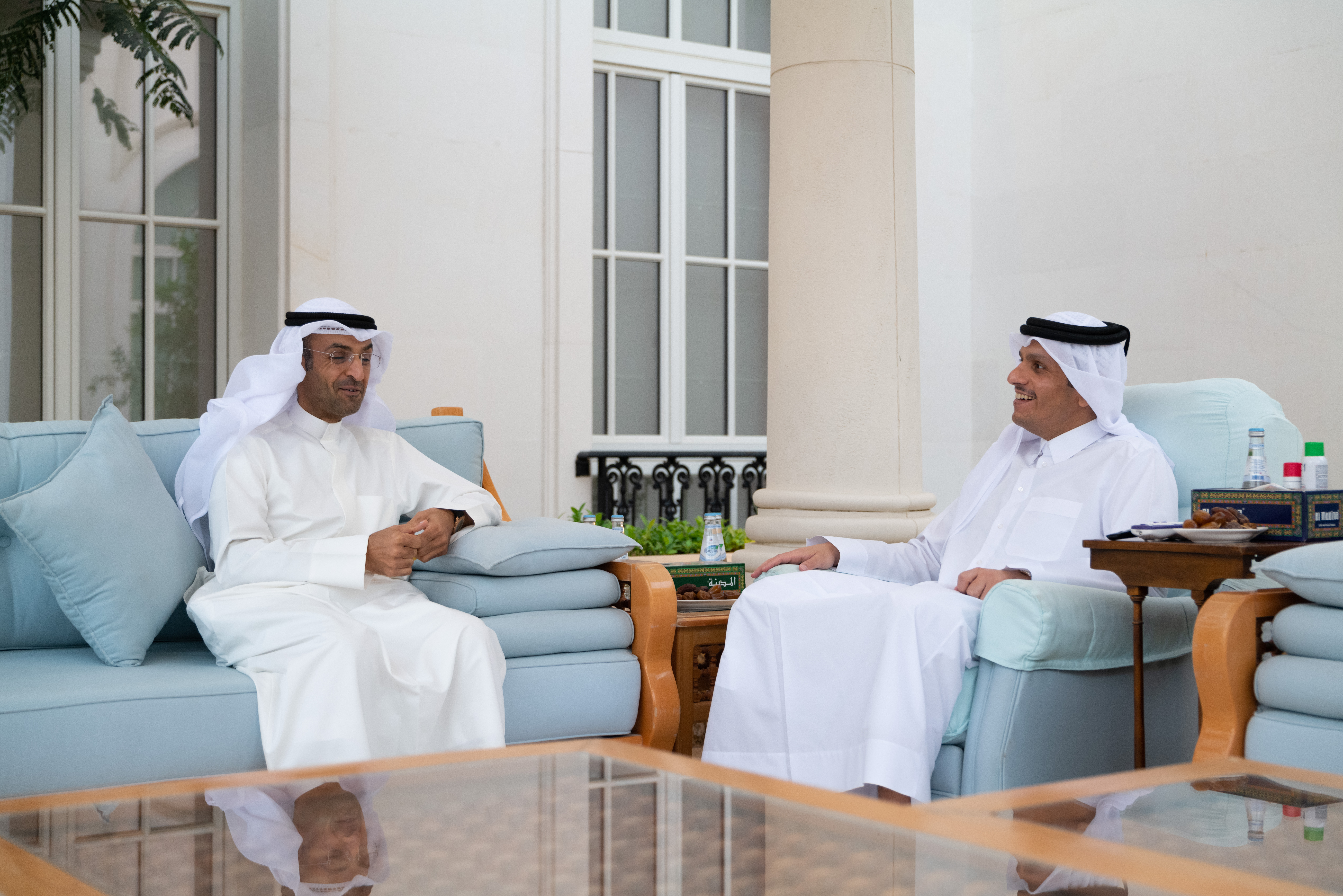 HE Deputy Prime Minister and Minister of Foreign Affairs Sheikh Mohammed bin Abdulrahman Al-Thani met on Sunday with HE Secretary-General of the Cooperation Council for the Arab States of the Gulf Dr. Nayef bin Falah Al Hajraf and his accompanying delegation, currently visiting the country.