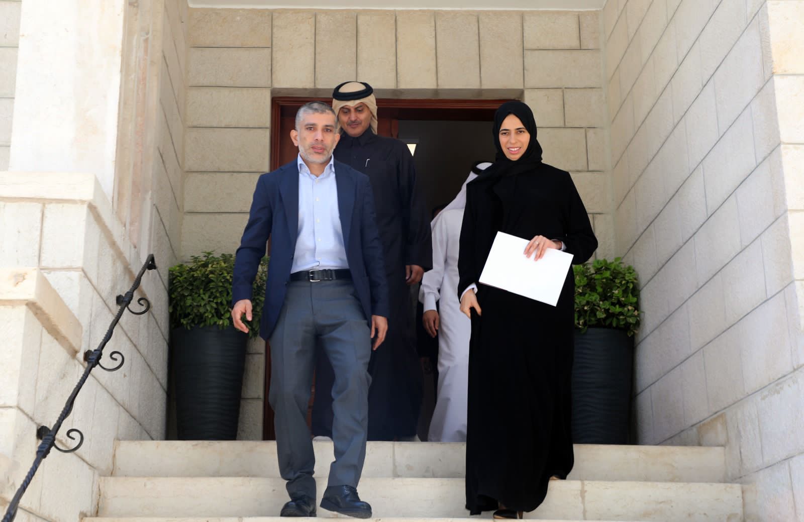 HE Ambassador of the State of Qatar to the Hashemite Kingdom of Jordan Sheikh Saud bin Nasser Al-Thani, HE Director of the International Cooperation Department at the Ministry of Foreign Affairs Shaheen bin Ali Al Kaabi and HE Deputy Chairman of the Qatar's Gaza Reconstruction Committee Ambassador Khaled Al Hardan attended the meeting.