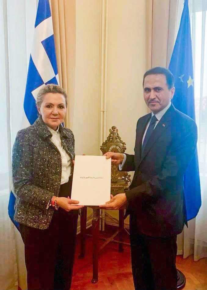 HE Director of the Department of Protocol of the Greek Ministry of Foreign Affairs Ambassador Aglaia Balta has received copy of the credentials of HE Ali bin Khalfan Al Mansouri as Ambassador Extraordinary and Plenipotentiary of the State of Qatar to Greece.