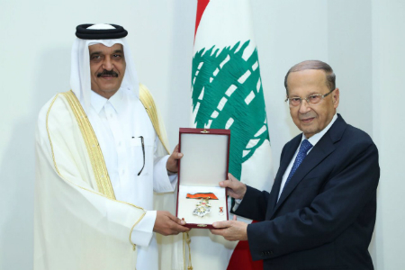 Lebanese President Presented Qatar's Ambassador with National Decoration of Cedar