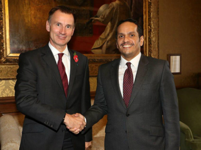 HE Deputy Prime Minister and Minister of Foreign Affairs Sheikh Mohammed bin Abdulrahman Al-Thani met on Thursday with HE the UK Secretary of State for Foreign and Commonwealth Affairs Jeremy Hunt, during his official visit to the United Kingdom.