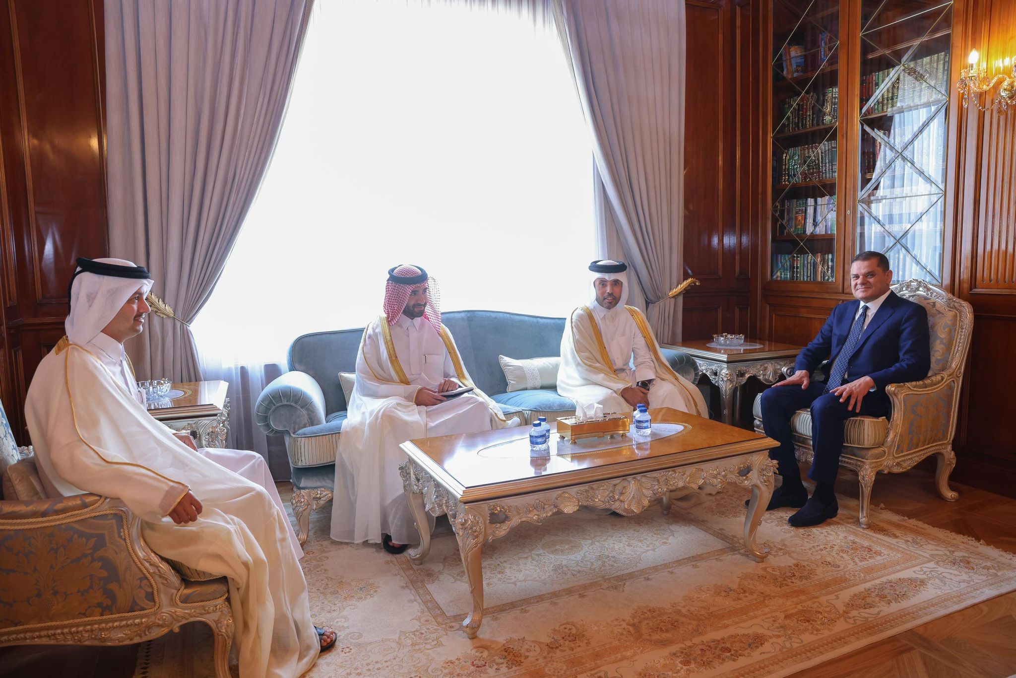 HE Head of the Government of National Unity of the sisterly State of Libya Abdul Hamid Mohammed Al Dbeiba met on Monday with HE Ambassador of the State of Qatar to Libya Khalid Mohammed bin Zabin Al Dosari.