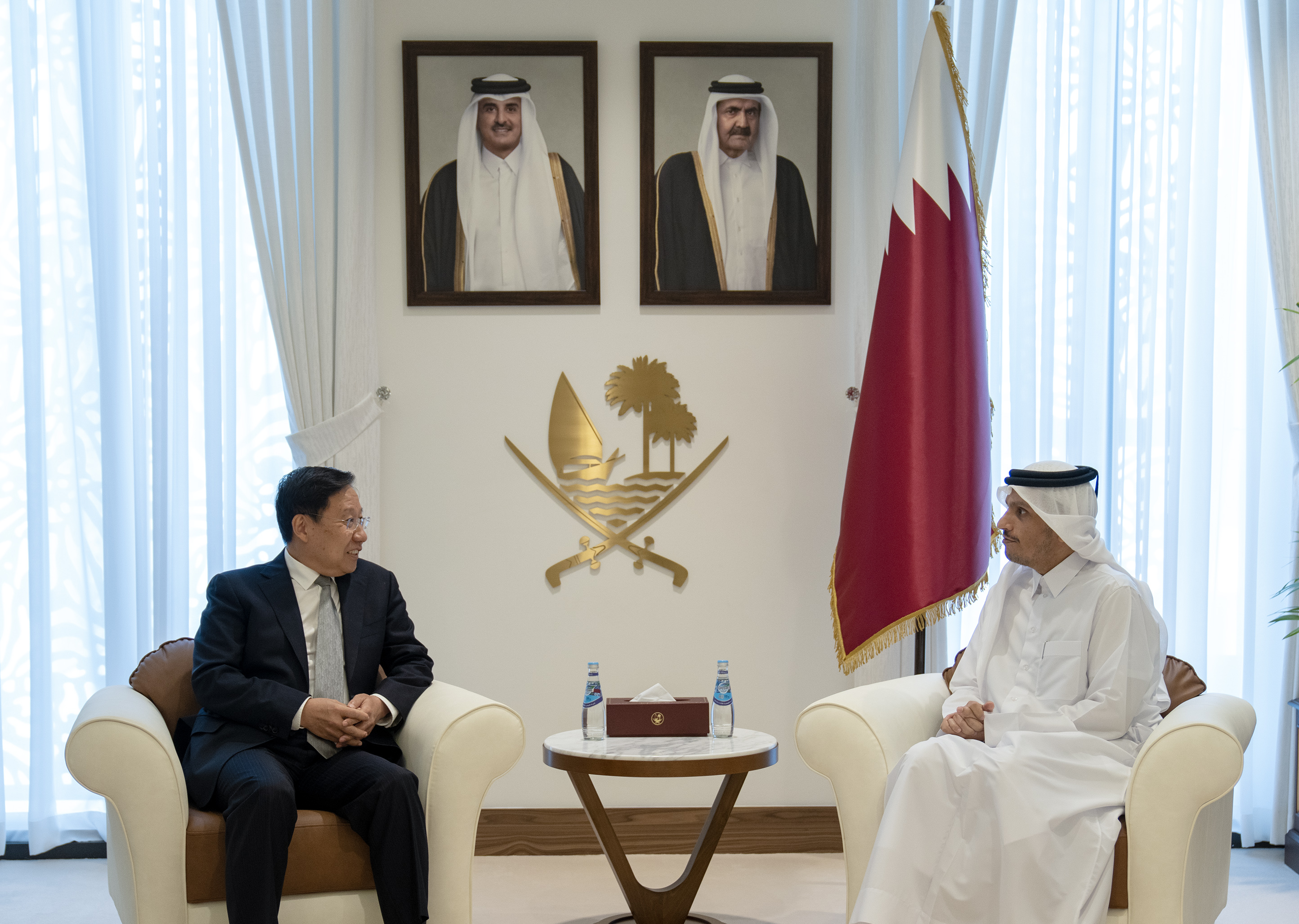 HE Prime Minister and Minister of Foreign Affairs Sheikh Mohammed bin Abdulrahman bin Jassim Al-Thani met at the Amiri Diwan on Monday with HE Chairman of the Standing Committee of Sichuan Provincial People's Congress and Secretary of the Communist Party of China (CPC) Sichuan Provincial Committee at the People's Republic of China, Wang Xiaohui, who is currently visiting the country.