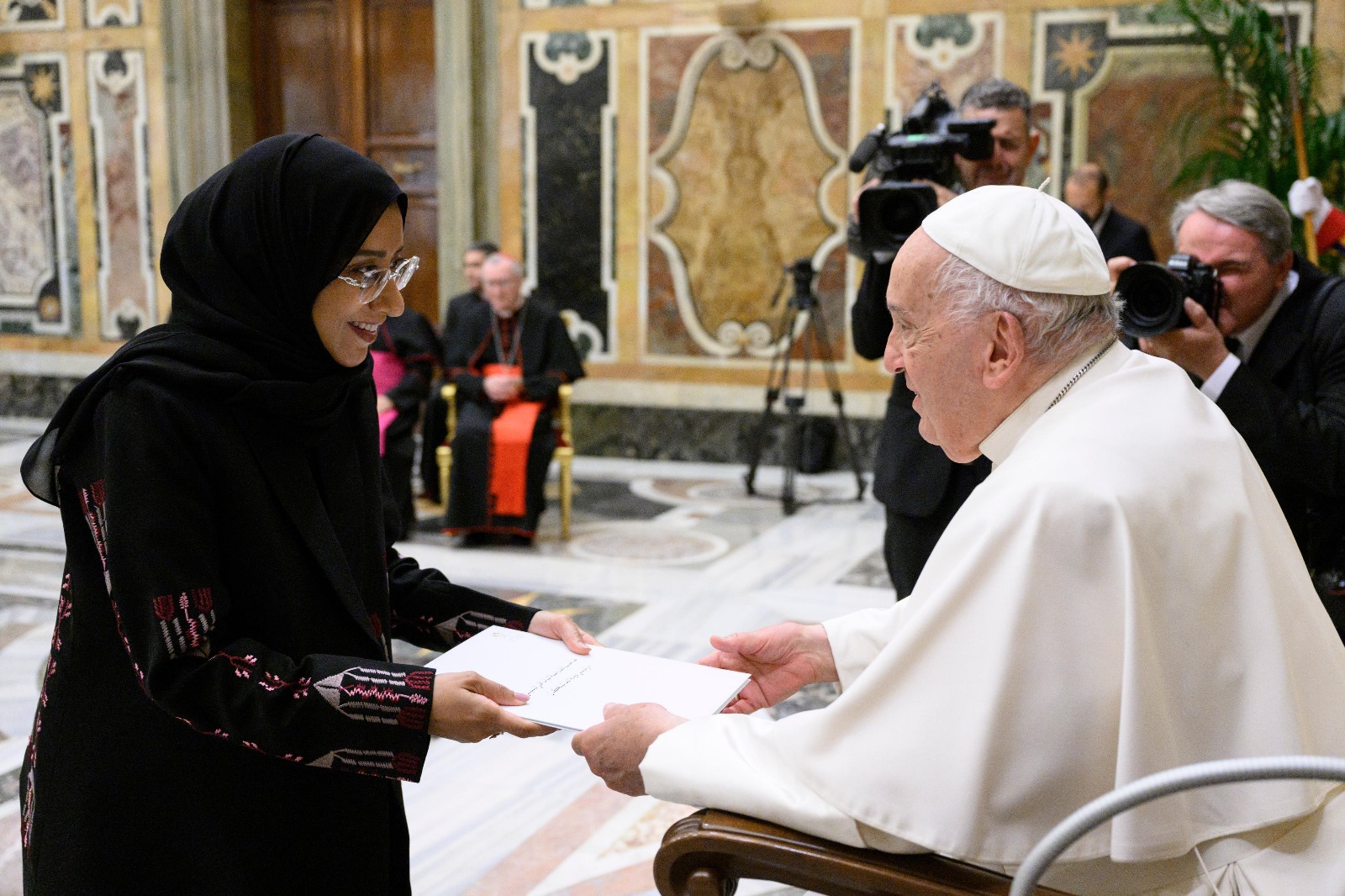 His Holiness Pope Francis of the Vatican received the credentials of HE Asma bint Naji Al Amri, as Ambassador Extraordinary and Plenipotentiary of the State of Qatar (Non-Resident) to the Vatican.