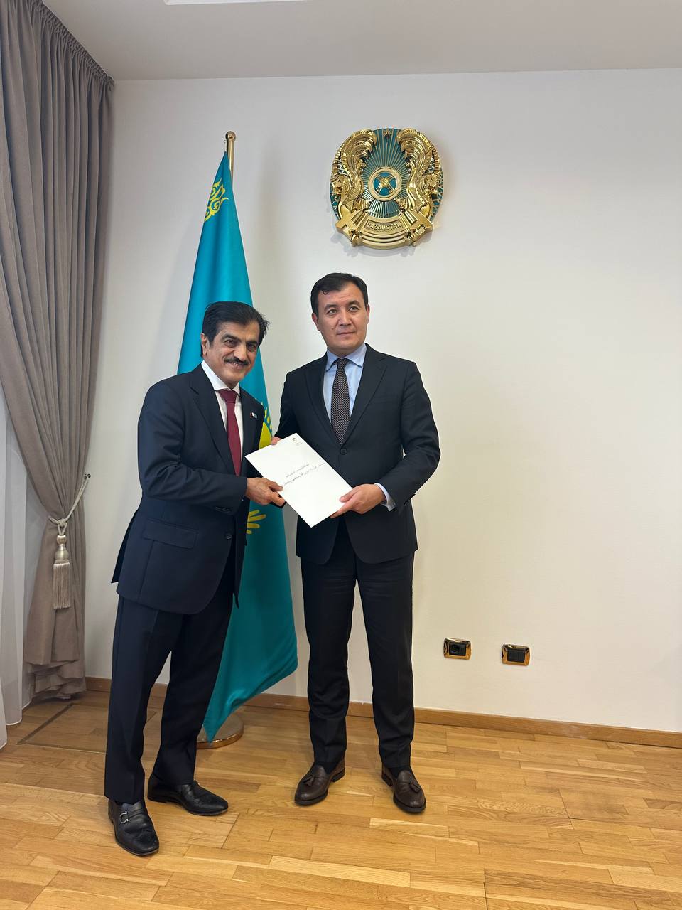 HE Deputy Minister of Foreign Affairs of the Republic of Kazakhstan Alibek Bakayev received Sunday a copy of credentials of HE Abdullah Hussein Al Jaber as Ambassador Extraordinary and Plenipotentiary of the State of Qatar to the Republic of Kazakhstan.