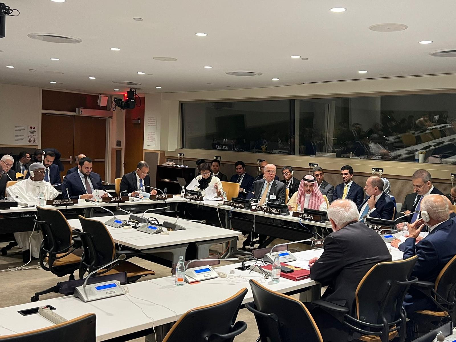 The State of Qatar participated on Sunday in the preparatory meeting of the Joint Arab-Islamic Ministerial Committee on Developments in Gaza, on the sidelines of the 79th session of the United Nations General Assembly (UNGA 79) in New York.