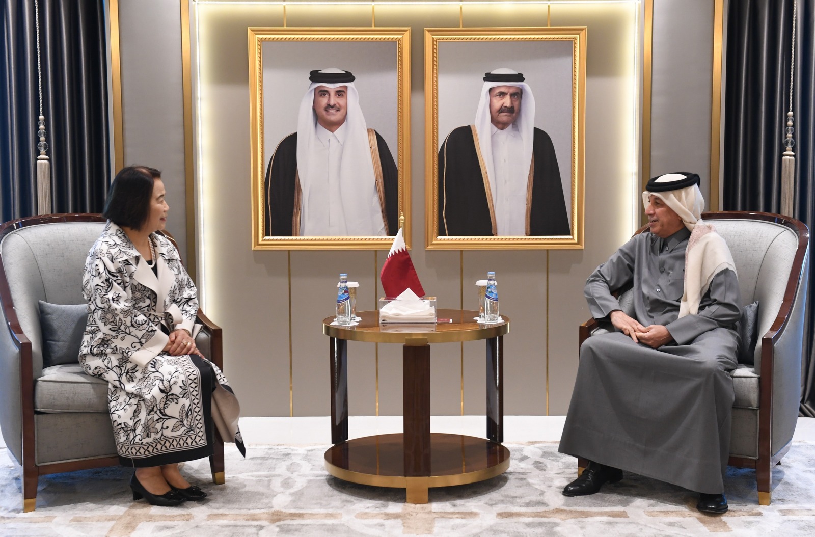 HE Minister of State for Foreign Affairs Sultan bin Saad Al Muraikhi met on Wednesday with HE Ambassador of the Republic of the Philippines to Qatar Lillibeth V. Pono, on the occasion of the end of her tenure.