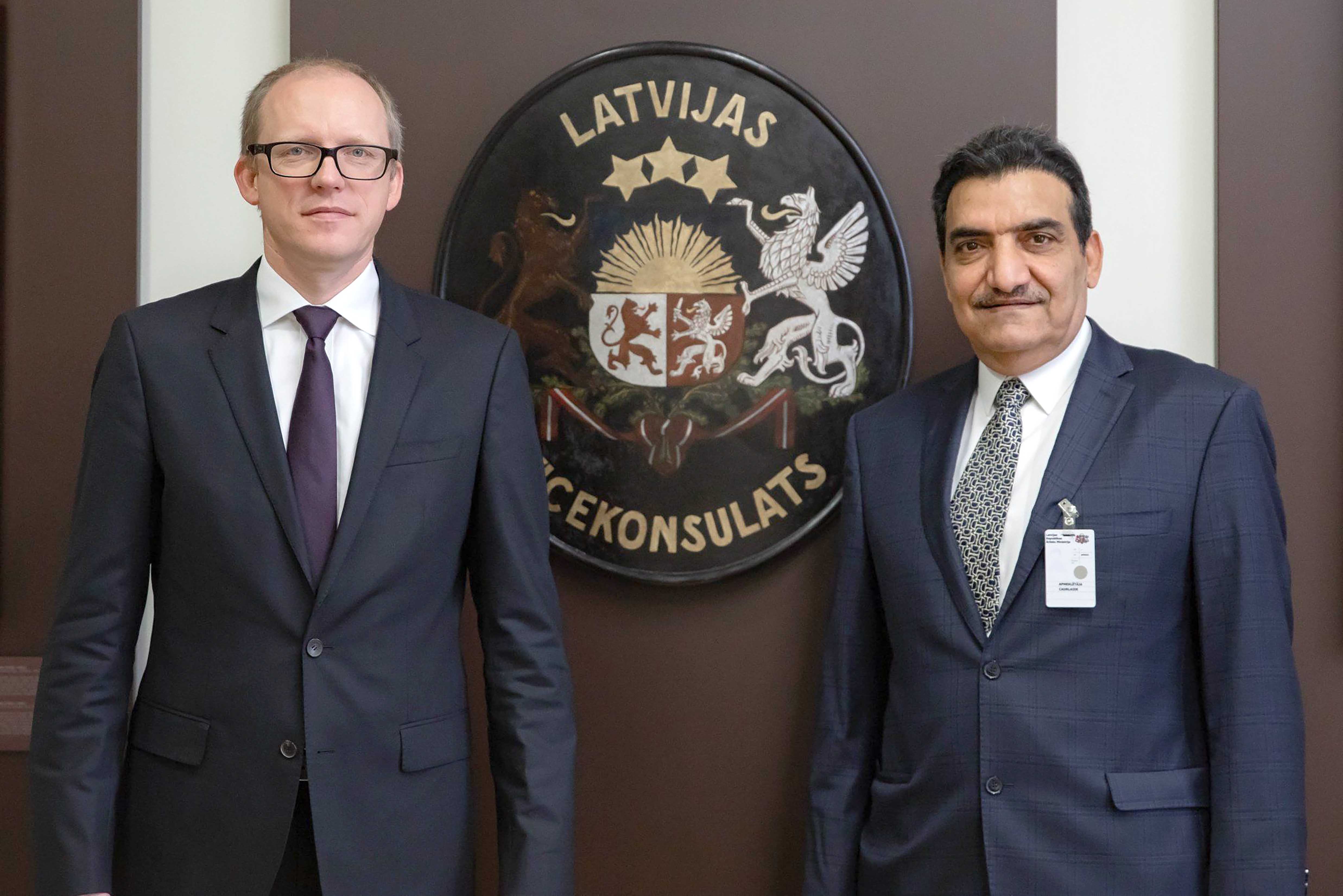 اجتمع سعادة السيد اندريس بيلشس وزير الدولة بوزارة الخارجية في جمهورية لاتفيا، مع سعادة السيد عبد الله بن عبد الرحمن فخرو، سفير دولة قطر "غير مقيم" لدى لاتفيا.