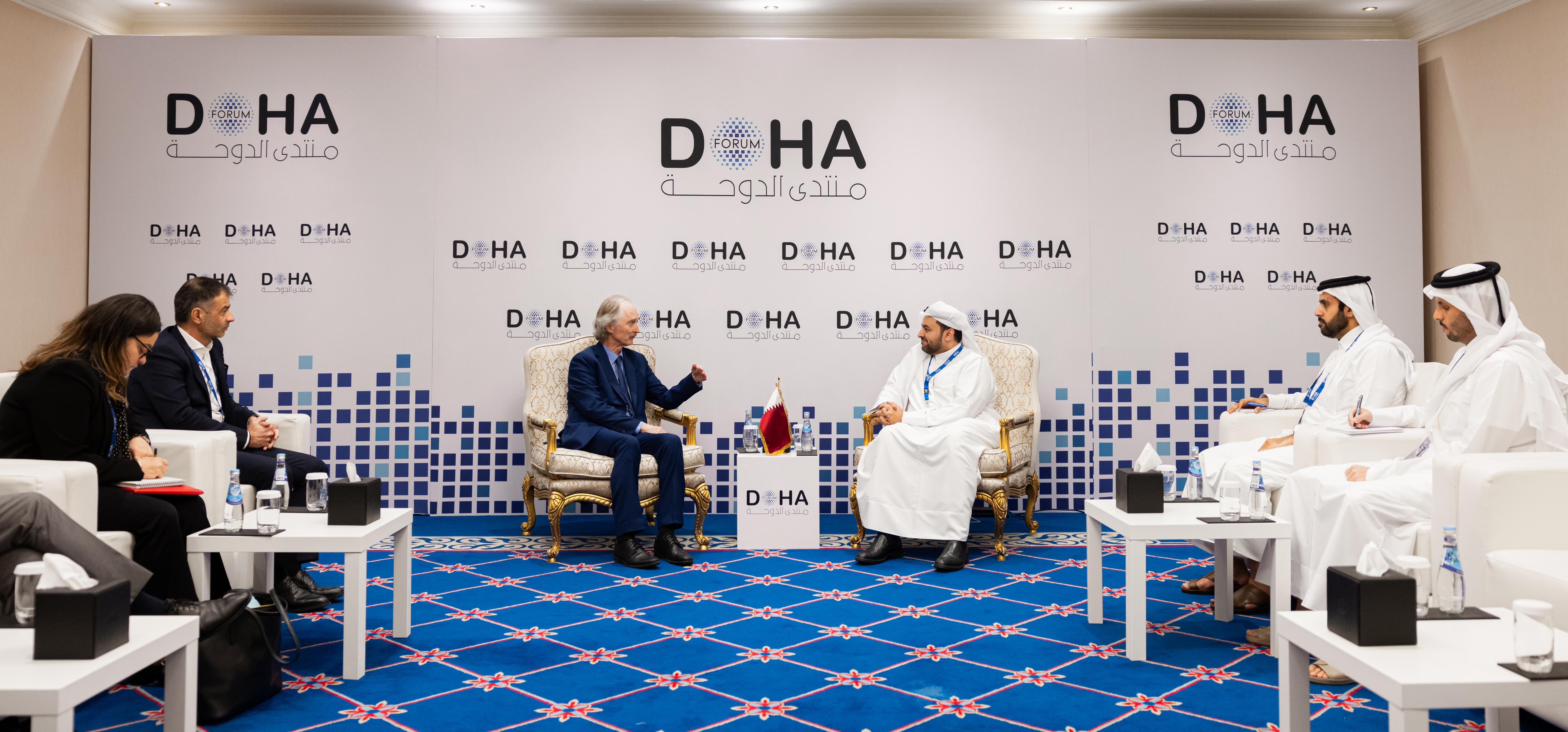 اجتمع سعادة الدكتور محمد بن عبدالعزيز بن صالح الخليفي، وزير الدولة بوزارة الخارجية، اليوم، مع سعادة السيد غير بيدرسون، مبعوث الأمم المتحدة الخاص إلى سوريا، على هامش منتدى الدوحة 2024.