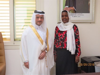 جيبوتي/المكتب الإعلامي/29 سبتمبر2016/ اجتمعت سعادة السيدة مؤمنة حومد حسن وزيرة المرأة والأسرة في جمهورية جيبوتي، مع سعادة السيد جاسم بن جابر جاسم سرور سفير دولة قطر لدى جيبوتي. جرى خلال الاجتماع بحث العلاقات الثنائية بين البلدين وسبل دعمها وتطويرها.