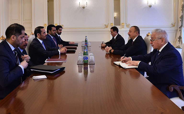 استقبل فخامة الرئيس إلهام علييف، رئيس جمهورية أذربيجان، اليوم، سعادة الشيخ محمد بن عبدالرحمن آل ثاني وزير الخارجية.